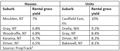 Data from PropTrack, the research arm of listing portal realestate.com.au, shows that across our capital cities, Moulden – an outer suburb of Darwin, tops the leaderboard for yields on houses, returning a healthy 7%.